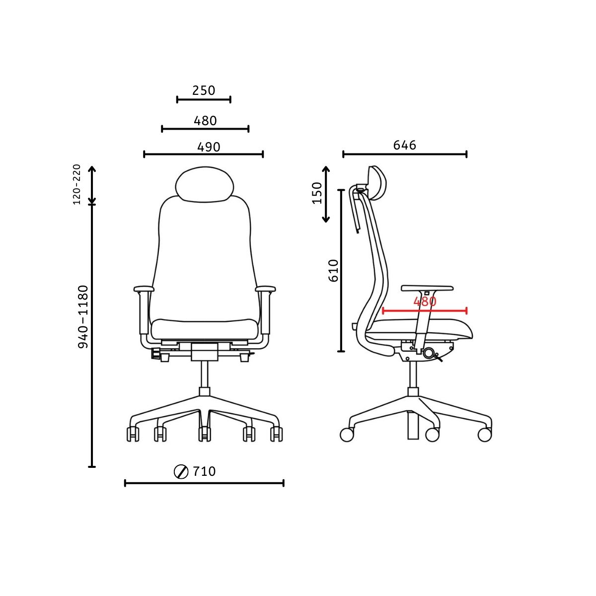 - Тапациран потпирач за глава, со прилагодлива висина.